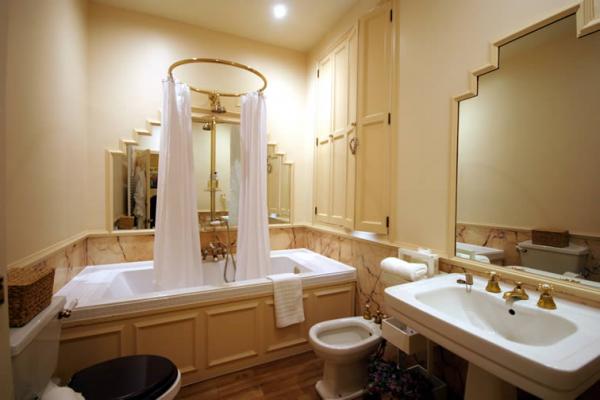 Five en-suite guest rooms have been tastefully designed with our guests’ comfort and convenience in mind. Each room has its own character, combining historic touches with modern luxuries. We also offer a lovely self-catering apartment, perfect for visitors wanting a little more independence. The York bedroom has a large, beautiful en suite bathroom with both bath and shower. Plenty of shelf space ensures that there is always somewhere to store that extra vanity box or wash bag! The total room area including bathroom is 20m².